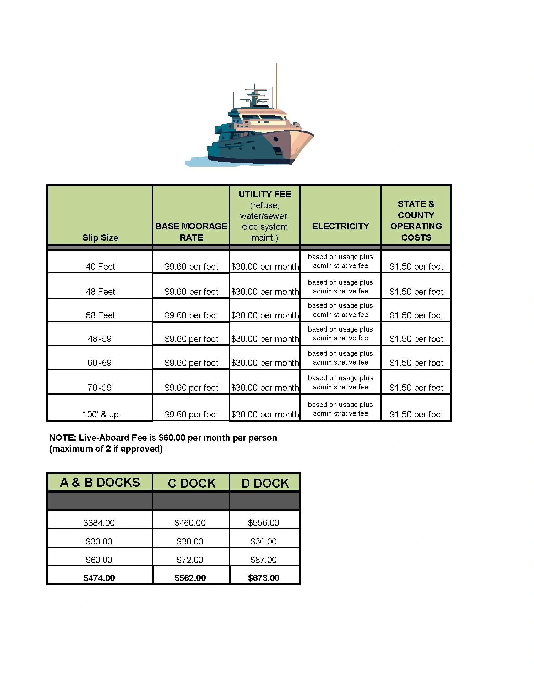 *Utility Fee (Garbage disposal, Restroom Maintenance, Dock Cleaning and Water Costs.